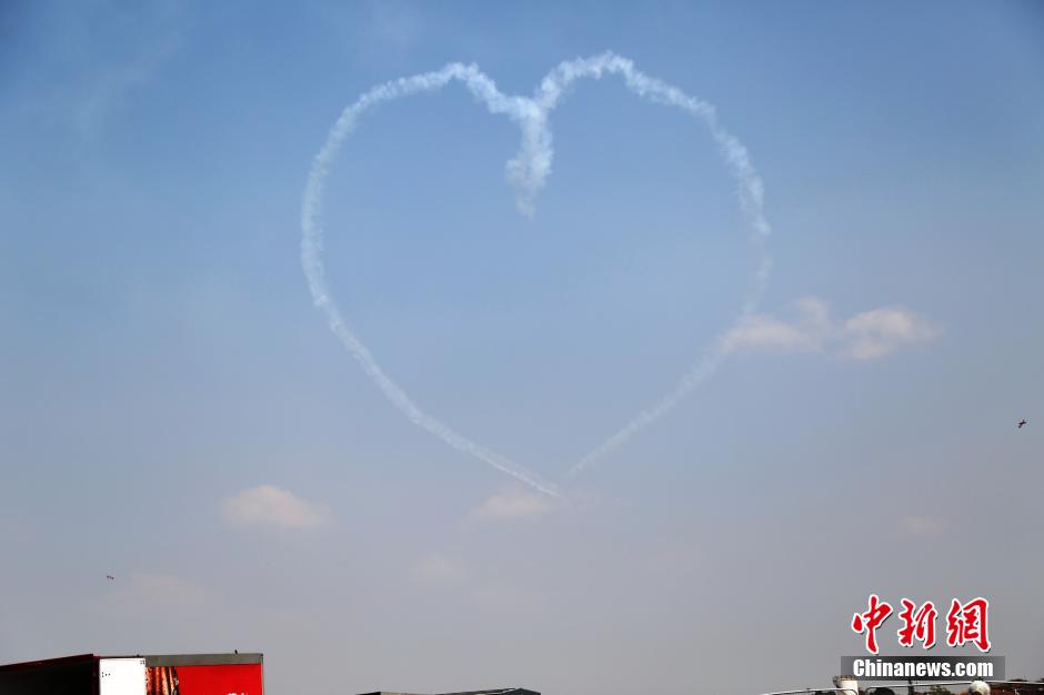 9月20日至21日,2014年非洲航空航天防务展举行公众开放日,并奉上精彩纷呈的空中特技表演。非洲航空航天防务展每两年举行一次,是非洲大陆最大的航空航天防务展,今年的展览于17日开幕,21日结束,共有26个国家和地区的347个展团参展。宋方灿 摄