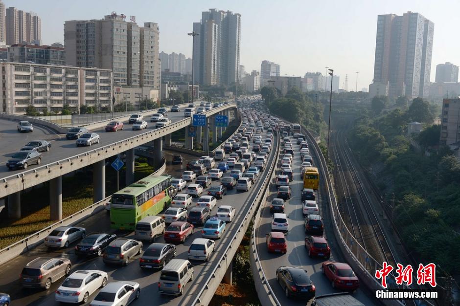 9月22日,正值全国无车日。上班高峰期,长沙城区内外的车道形成了两种截然不同的景象。据悉,这是湖南长沙第7次参与全国城市无车日活动。交警于当天在长沙城区设置大小两个禁行区域,实施交通管制措施。 杨华峰 摄