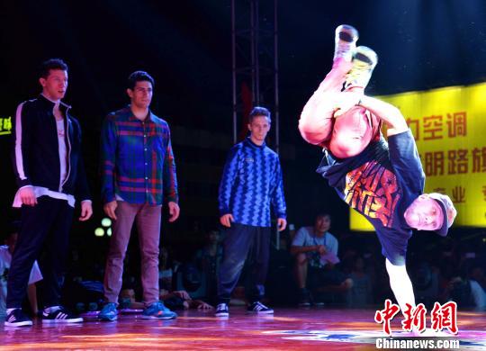 9月21日晚,外籍选手在第五届全国街舞精英挑战赛比赛现场。 唐顺生 摄