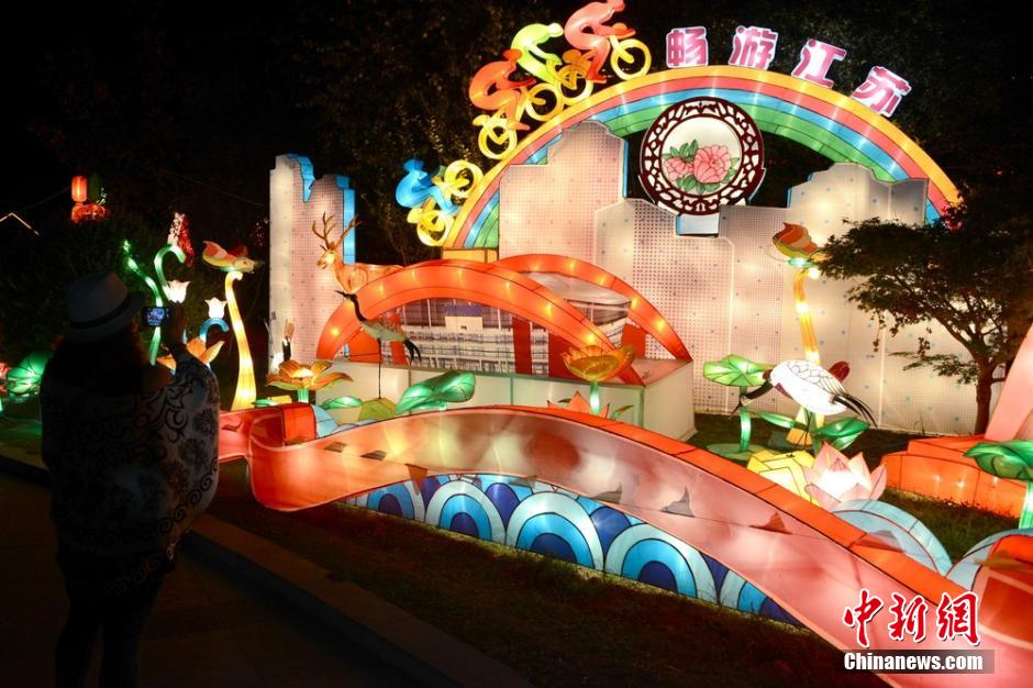 9月21日晚,以“灯耀中华,缘连两岸,情同一家”为主题的“2014两岸情缘灯会”在“2014中国(常熟)江南文化节暨沙家浜旅游节”开幕式上点灯启动,吸引了众多市民前来参观。据了解,此次灯会共展出蕴含常熟特色、江南韵味、中华大团结等多主题的靓丽彩灯18组,均采用新型光源、科学配置灯组内外光源以降低电能的消耗,突显当代彩灯的艺术水准,成为尚湖风景区一道靓丽景观。王思哲 摄