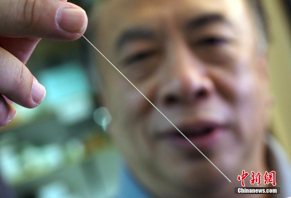 图为在美国行医20余年,身为清代著名中医温病学家吴鞠通的第七代传人的吴宝林在给患者针灸。中新社发 毛建军 摄