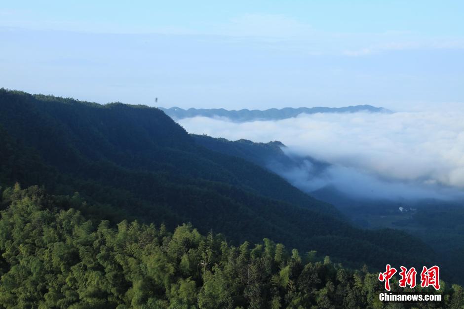 9月20日清晨,雨过天晴的四川长宁蜀南竹海出现了罕见的云海和日出奇观。17日至19日,长宁县遭遇9月罕见强降雨,全县各地降雨量均在100毫米左右。中新社发 刘龙泉 摄