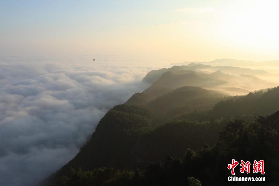 9月20日清晨,雨过天晴的四川长宁蜀南竹海出现了罕见的云海和日出奇观。17日至19日,长宁县遭遇9月罕见强降雨,全县各地降雨量均在100毫米左右。中新社发 刘龙泉 摄
