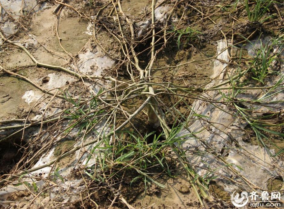 图为结出52个西瓜主秧,瓜秧看上去明显比一般的西瓜秧粗的多,大大小小的发出了几十个副秧,从主秧延伸到四面八方。 图片来源:齐鲁网
