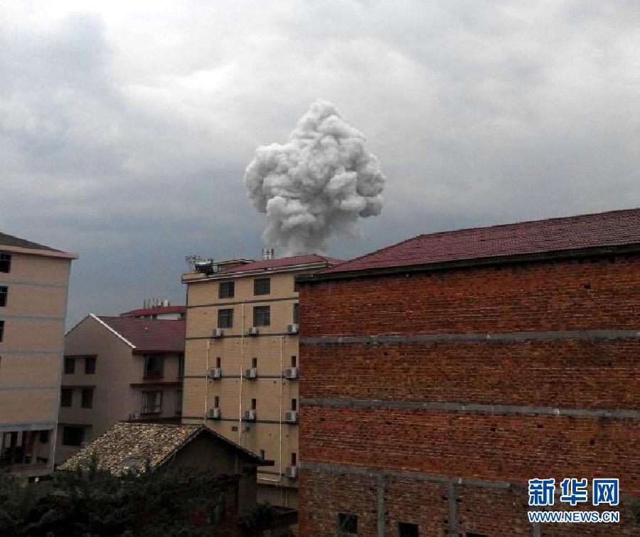 9月22日,湖南省醴陵市浦口镇保丰村南阳出口花炮厂爆炸产生了巨大的蘑菇云(手机拍摄)。