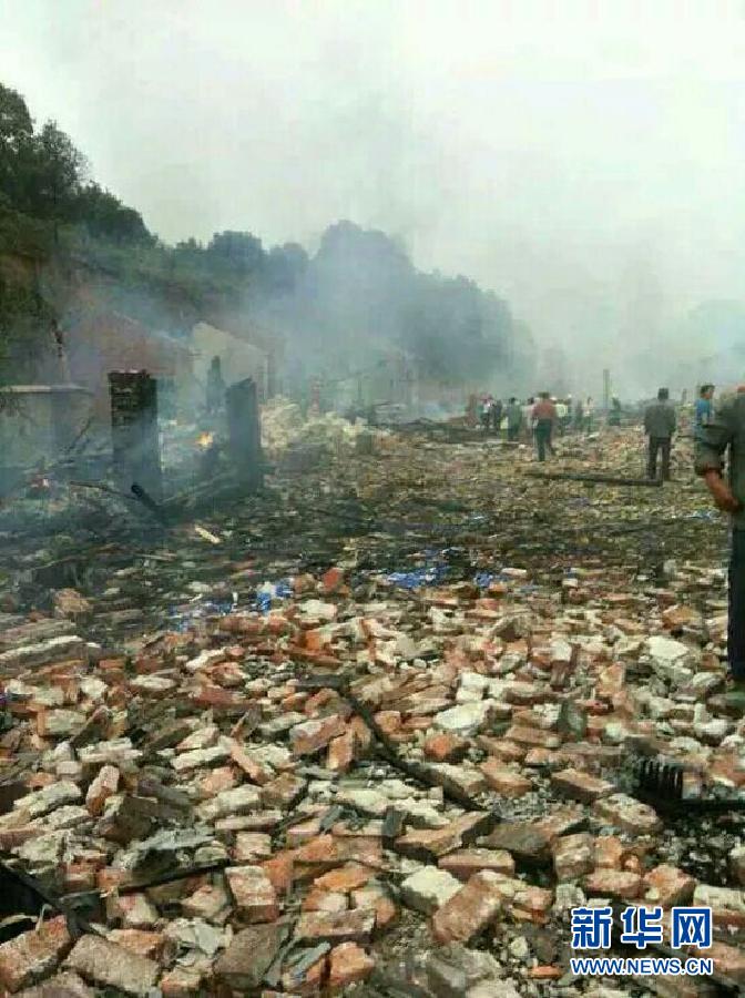 9月22日,湖南省醴陵市浦口镇保丰村南阳出口花炮厂爆炸现场一片狼藉(手机拍摄)。