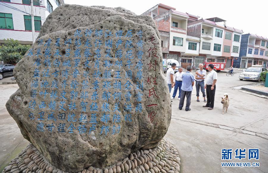 毛俊村“百姓广场”边的一块石头上,刻着村里所有住户的姓氏(9月17日摄)。湖南省蓝山县毛俊村曾是一个远近闻名的“法外之地”:村霸横行、帮派林立、宗族势力各据一方。近年来,通过充实基层党组织力量,建立公开透明的监督机制,用“国法村规”取代“江湖规矩”,村民的观念和风气发生了根本性变化。如今,这里已成为湖南省著名的“民主法治示范村”和“新农村建设示范村”。 新华社记者 李尕 摄