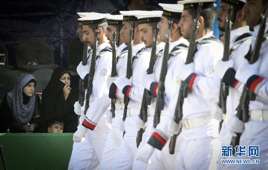 当地时间2014年9月22日,伊朗德黑兰,参加纪念两伊战争(1980-88)大阅兵的伊朗革命卫队士兵列队前进。