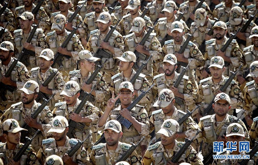 当地时间2014年9月22日,伊朗德黑兰,参加纪念两伊战争(1980-88)大阅兵的伊朗革命卫队士兵列队前进。