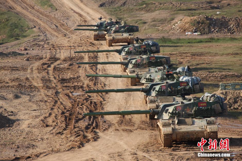 近日,解放军兵种部队跨区基地化训练进入“收官之战”,陆军第26集团军某炮兵旅转战千余公里,机动至南京军区三界训练基地,开展代号为“火力-2014·三界”的实战化演练,并即将进行实弹战术演习。从7月到9月,总参谋部组织6个炮兵旅、4个防空旅,进行代号为“火力-2014”的跨区基地化训练。集中组织兵种部队跨区基地化训练,在中国军队军事训练领域还是首次。图为占领阵地完成射击准备。中新社发 徐宁 摄