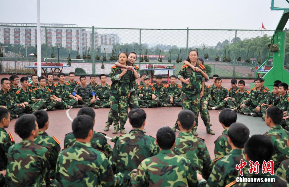 女大学生们正在学习防狼擒拿术。刘忠俊 摄