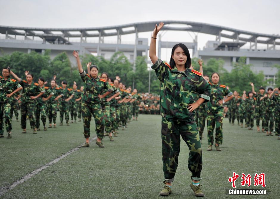 训练之余女大学们还跳起了《小苹果》舞,博得大家的阵阵掌声。刘忠俊 摄