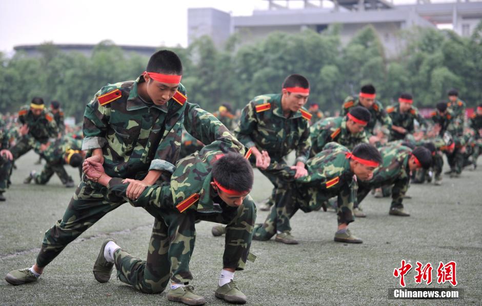军训中大学生们学习擒拿术。刘忠俊 摄