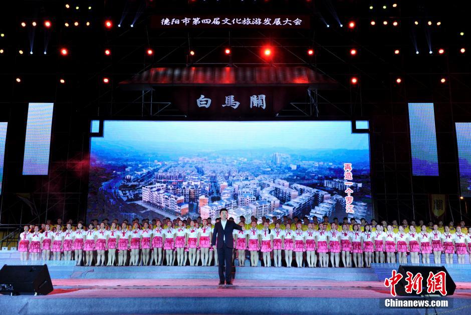 9月22日晚间,以“蜀都门户,和美罗江”为主题的四川德阳市第四届文化旅游发展大会大型群众性文艺演出在四川工业科技学院举行,由此拉开了四川德阳市第四届文化旅游发展大会的大幕,精彩的文艺节目吸引众多市民和学生观看,不时爆发出热烈的掌声和喝彩声。图为演出现场。中新社发 安源 摄