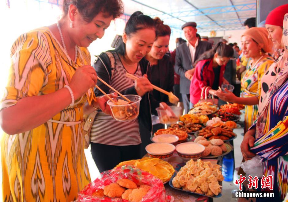 9月22日,新疆库车县哈尼喀塔木乡托库孜托玛村举办了一场妇女厨艺大赛,来自该乡的26个村约150名参赛选手带着各自的民族传统美食参加了比赛。妇女们各显手艺,精心烹制出大盘鸡、抓饭、馕、点心等一道道色、香、味俱佳的少数民族传统美食共120多道,上演舌尖上的诱惑。最终,评委们按观感、味道、质感等标准对所有参赛作品进行评分,评出一、二、三等奖共6名进行了奖励。范红英 摄