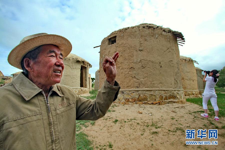 察北管理区74岁的老职工乔德(原察北牧场二分场职工)向记者介绍粮仓的由来(8月27日摄)。河北省张家口市察北管理区前身为国营察北牧场,是河北省农垦局管理的九大农牧场之一,也是新中国成立初期前苏联援建中国的两个农牧场之一。在管理区内,有很多用来存放小麦、莜麦、豌豆等粮食作物的土坯粮仓,每座土坯粮仓能存粮3.6万斤,且不潮不霉,牧场职工称这些粮仓为“土圆包”。直到上世纪80年代初期,这些“土圆包”才停止使用。目前,察北管理区共有120多个保存完好“土圆包”,每年吸引着不少游客前来参观。新华社记者杨世尧摄