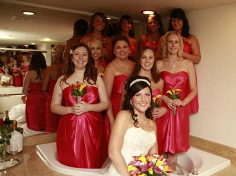 新娘和伴娘们被要求站在热水浴缸中。(网页截图)