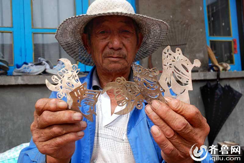 皮影戏,与其他民间艺术一样,是中华民族所特有的民间瑰宝之一,通 过艺人娴熟的手上功夫的演绎,幕布上映出的色彩斑斓、生动有趣的剪影形 象。但是,随着时代的变迁,皮影戏逐渐偃旗息鼓,往日那受人追捧的皮影 艺人们也淡出人们的视野。被纳入“山东省首届非物质文化遗产名录”的日 照岚山区黄墩镇皮影戏,由于传承人的“青黄不接”,加之皮影已不再为人 们所喜爱,那传承了几代人,还保存完好的皮影也已深锁于木箱中,如今面临失传。图为夏召瑞展示未制作完成的皮影人物形象。张照朋 摄 图片来源:齐鲁网