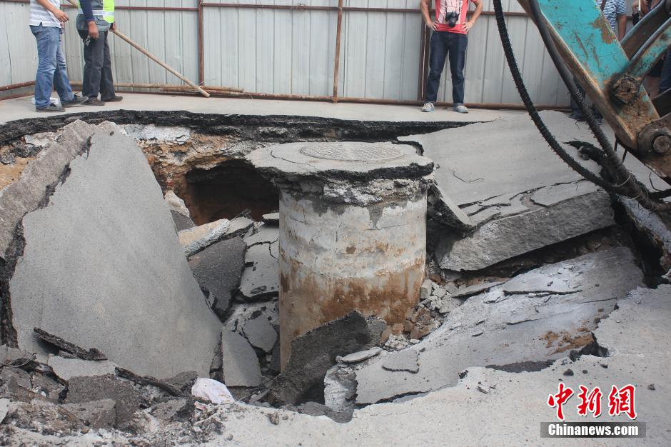 图为9月23日的西三环快速路塌坑约2米深、直径约2.5米。马义恒 摄