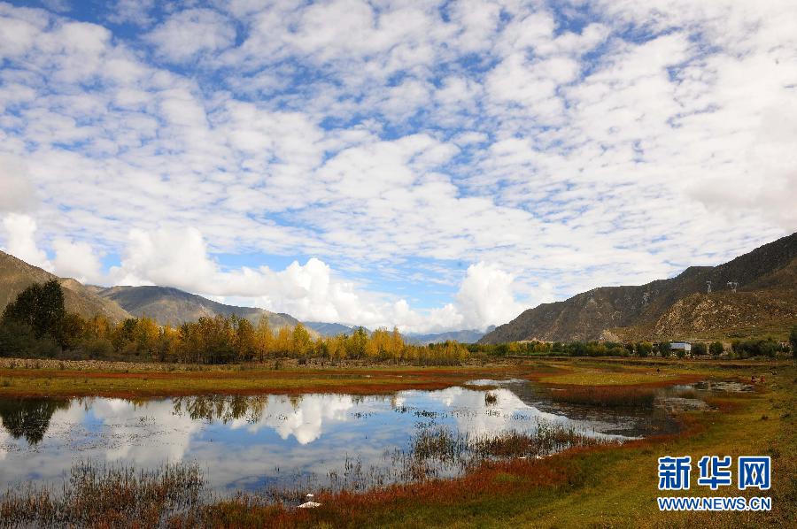 9月23日在西藏墨竹工卡县境内拍摄的秋日景象。进入秋季,西藏高原在蓝天白云的映衬下,勾勒出一幅幅色彩斑斓的画面,美不胜收。 新华社记者 文涛 摄