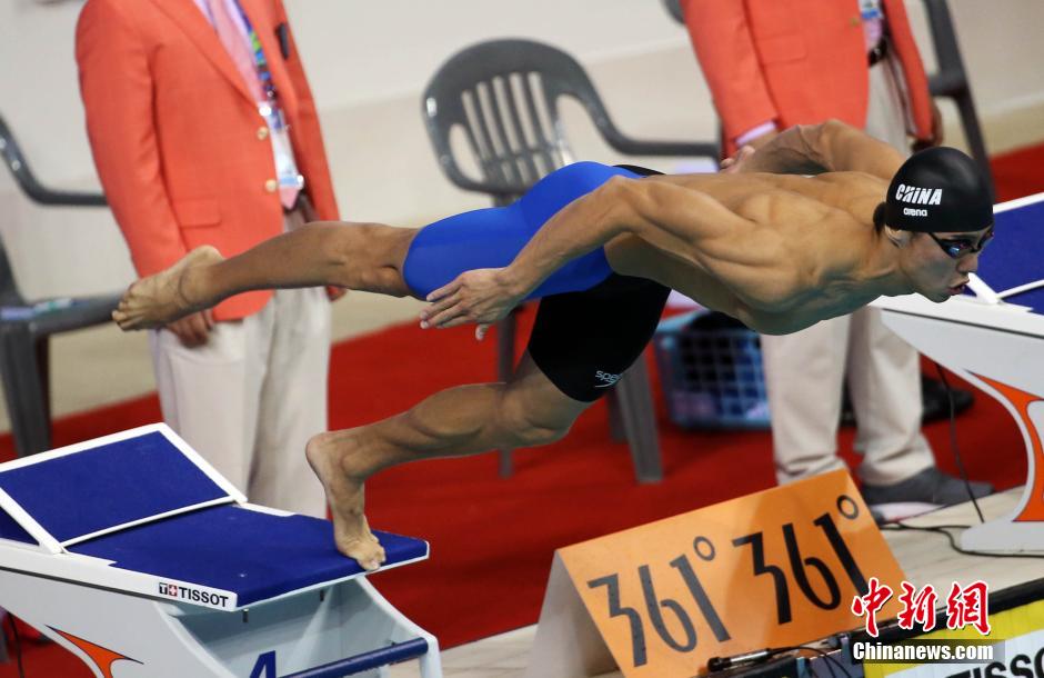 9月23日,仁川亚运会游泳比赛在文鹤朴泰桓游泳馆展开第三日争夺,中国选手宁泽涛以21秒95勇夺男子50米自由泳金牌。中新社记者 汤彦俊 摄