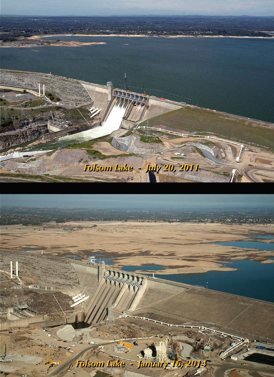 上图是2011年7月份的福尔瑟姆大坝,下图是2014年同一座水坝现在的情况。