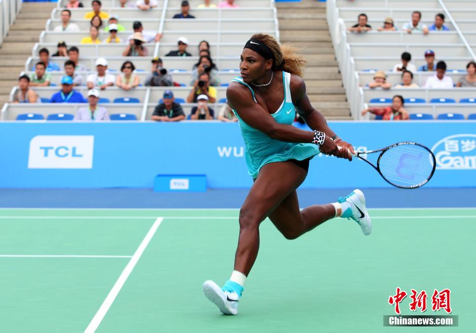9月23日,WTA武汉网球公开赛继续进行女单次轮比赛的争夺。在当日下午时段最后一场比赛,头号种子小威廉姆斯在首盘6:5领先的情况下身体不适退赛,对手科内特晋级16强。图为小威廉姆斯比赛中回球。中新社发 张畅 摄