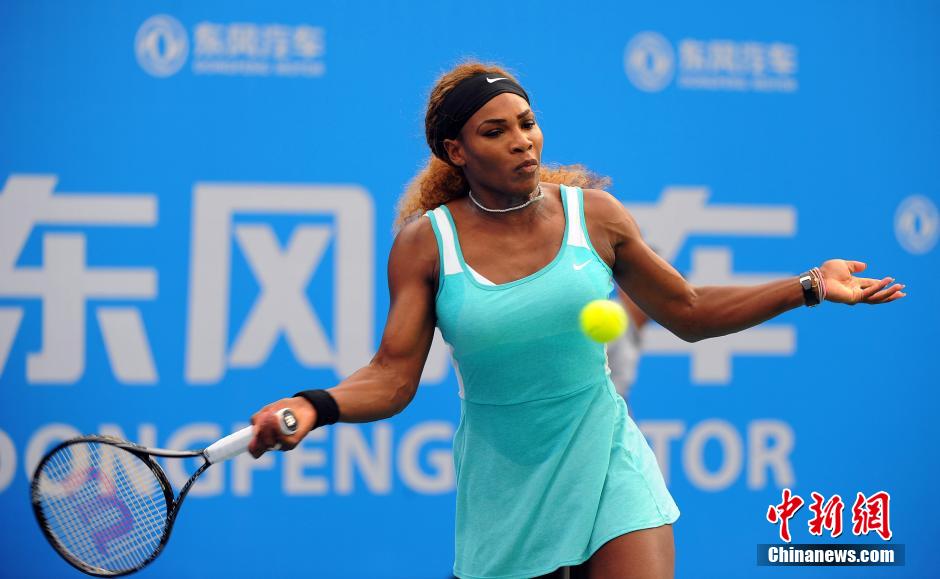 9月23日,WTA武汉网球公开赛继续进行女单次轮比赛的争夺。在当日下午时段最后一场比赛,头号种子小威廉姆斯在首盘6:5领先的情况下身体不适退赛,对手科内特晋级16强。图为小威廉姆斯在比赛中击球。中新社发 张畅 摄