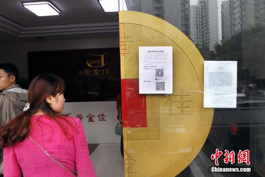 9月18日,“河北黄金第一家”廊坊黄金佳集团突遭查封,多数高层管理人员被抓。22日,廊坊警方证实黄金佳集团涉嫌非法集资,正在立案查处。有媒体报道,案件涉及河北、北京、天津等九省市,黄金佳集团25亿元的银行存款已被冻结。图为位于高新路黄金佳公司大门上已贴上通告告知客户前去公安机关报案,仅仅一个上午,公司前台已登记有近百人报案,涉及金额超过千万元。 图片来源:CFP视觉中国
