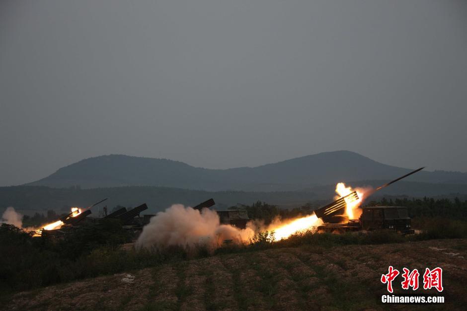 正在南京军区三界训练基地进行的“火力-2014·三界”跨区演习,9月24日上演此次演习的重头戏:济南军区某炮兵旅多种火炮实弹射击。“火力-2014·三界”是今年中国陆军炮兵防空兵部队参加的“火力”系列10场跨区演习中的最后一场。实弹射击是此次演习中最为重要的一个环节。按照“实兵实弹、全系统运用”的要求,检验“侦、控、打、评、保”能力,昼夜实施,演练多手段火力压制、多地段火力拦阻、多层次火力护送、多阵地机动打击、快速反应临机打击,以及组织精确弹药火力拔点、特种弹药火力迷盲等,反坦克火炮、加农炮、加榴炮、火箭炮等多种火炮轮番上阵。中新社发 徐宁 摄