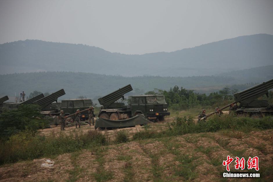 正在南京军区三界训练基地进行的“火力-2014·三界”跨区演习,9月24日上演此次演习的重头戏:济南军区某炮兵旅多种火炮实弹射击。“火力-2014·三界”是今年中国陆军炮兵防空兵部队参加的“火力”系列10场跨区演习中的最后一场。实弹射击是此次演习中最为重要的一个环节。按照“实兵实弹、全系统运用”的要求,检验“侦、控、打、评、保”能力,昼夜实施,演练多手段火力压制、多地段火力拦阻、多层次火力护送、多阵地机动打击、快速反应临机打击,以及组织精确弹药火力拔点、特种弹药火力迷盲等,反坦克火炮、加农炮、加榴炮、火箭炮等多种火炮轮番上阵。中新社发 徐宁 摄