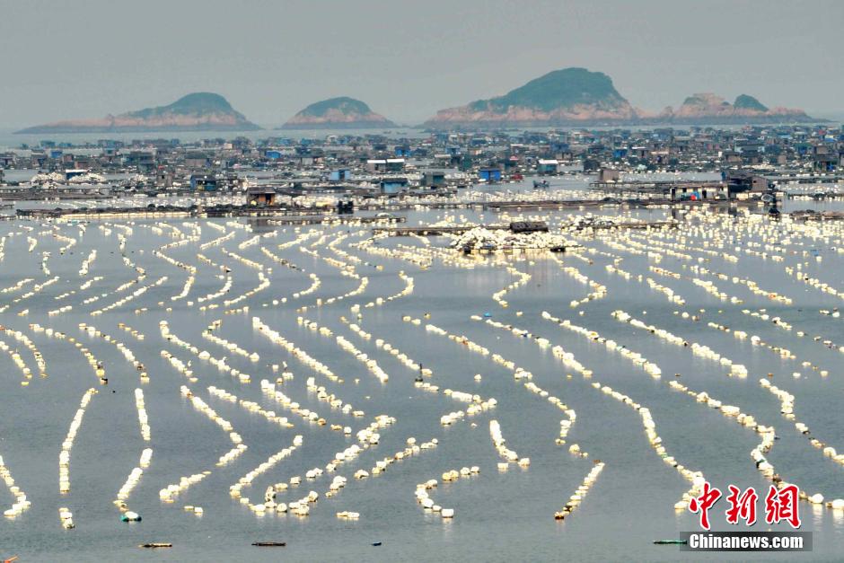9月24日,在福建省罗源湾海域上,海上渔排绵延,渔排上搭建的木屋错落成“户”,船只来往穿梭,从海上远远地望去,就像一座“海上浮城”。据了解, 这些“浮城”的出现与罗源湾的海水养殖有着直接的关系,罗源湾的网箱海上养殖从1992年开始,之后这些便随之养殖业的发展慢慢壮观起来,成为一道亮丽的海上风景线。张斌 摄