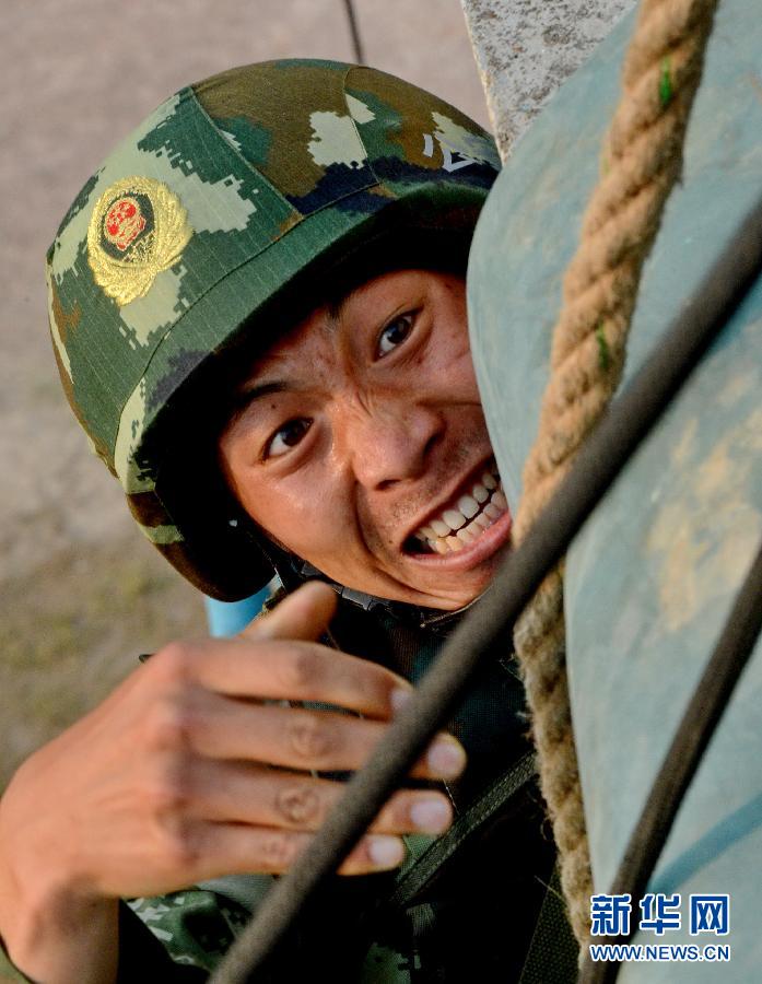 当日,全国公安边防部队岗位技能比武暨军事体育竞赛在广州某基地闭幕。来自全国32个总队级单位的384名特战队员,在4天的时间里通过特战小组对抗射击、攀登射击、5公里武装越野、突入识別射击和协同突击等课目的竞赛,既锻炼了队员处突实战的能力,也使他们的意志、耐力和心理承受力经受了全面的考验。新华社发(王小雪摄)