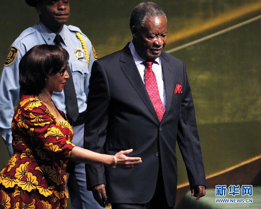 9月24日,赞比亚总统迈克尔·萨塔因身体原因未能按计划在纽约联合国总部举行的第69届联合国大会一般性辩论中发言。图为赞比亚总统迈克尔·萨塔出席往届联合国大会一般性辩论的资料照片(2012年9月26日摄)。 新华社/美联