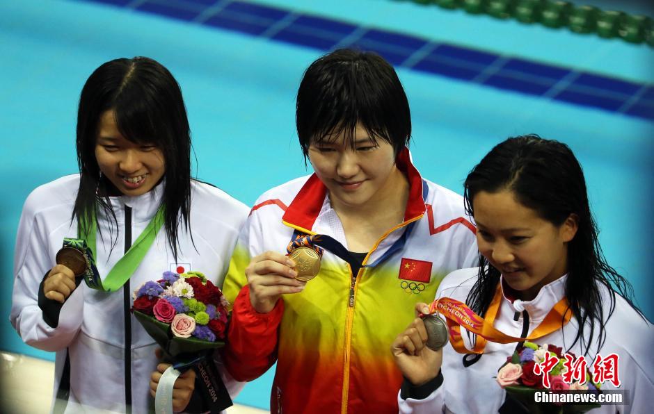 9月26日,仁川亚运会游泳比赛继续在文鹤朴泰桓游泳馆举行。在女子200米个人混合泳决赛中,中国选手叶诗文以2分08秒94的成绩夺得冠军并打破赛会纪录。中新社记者 汤彦俊 摄