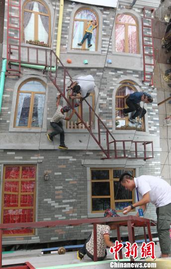 图为重庆市民在“反射视觉幻象房子”中体验“盗梦空间”。周毅 摄