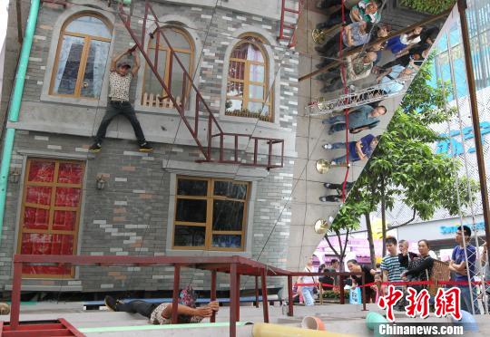 图为重庆市民在“反射视觉幻象房子”中体验“盗梦空间”。周毅 摄