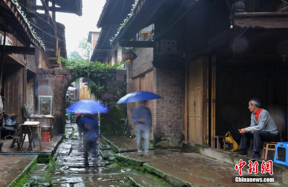 10月4日,龙华小镇迎来小批量游客,青石板的街道上不停地有游客行走的踪影。四川屏山县龙华镇始建于宋代,是历代四川边防驻军重地。小镇依山而建,房屋错落有致,街道全由青石板铺成,全木质结构的街坊至今保存完好。据悉,小镇没有开发成为旅游景点,老屋里还住着不少人家。 中新社发 刘忠俊 摄