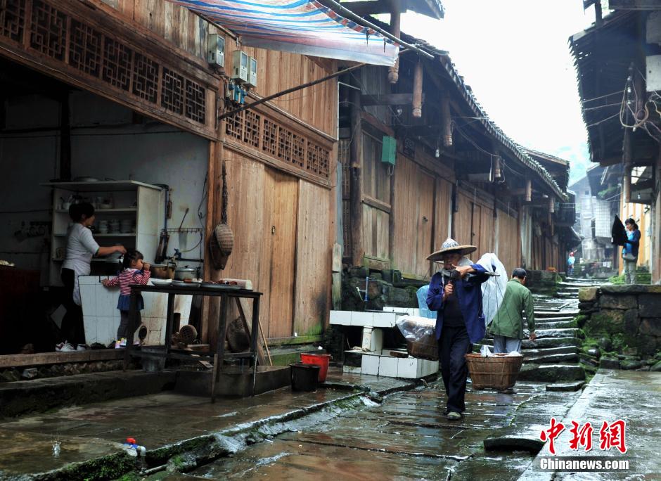10月4日,龙华小镇保存较好,至今还住着不少人家。四川屏山县龙华镇始建于宋代,是历代四川边防驻军重地。小镇依山而建,房屋错落有致,街道全由青石板铺成,全木质结构的街坊至今保存完好。据悉,小镇没有开发成为旅游景点,老屋里还住着不少人家。 中新社发 刘忠俊 摄