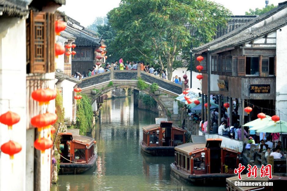 10月5日,大批市民和游客涌入苏州山塘老街游玩。当日是国庆假期的第五天,虽然假期过半即将结束,一些热门旅游城市的热门景点依旧游客不减。王思哲 摄