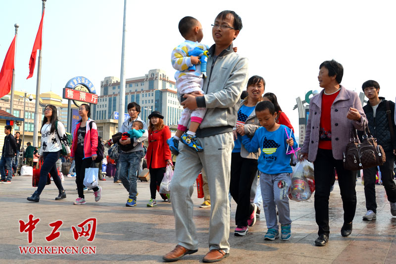 10月7日,“十一”黄金周接近尾声,北京火车站迎来国庆长假返程高峰。 (中工网记者 笑语摄)