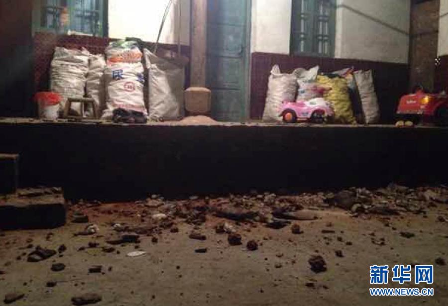 10月7日,云南省景谷县城一户农家的瓦片散落在地(手机拍摄)。据中国地震台网中心网站消息,云南省普洱市景谷傣族彝族自治县北京时间10月7日21时49分发生6.6级地震。 新华社发(曹明星 摄)