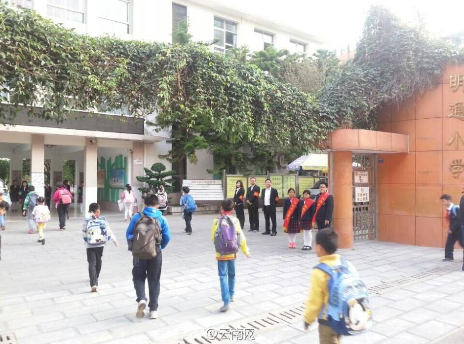 据云南网官方微博消息,9月26日发生踩踏事故后,今天(10月8日)上午,明通小学复课。记者7:30分左右到达学校外,校门口有交警、民警,以及值日老师在维持秩序,现场多位送小孩的家长都在提醒自己孩子注意安全。此外,记者从现场家长处获悉,学校已取消低年级学生在校午休。 念新洪 摄 图片来源:云南网官方微博