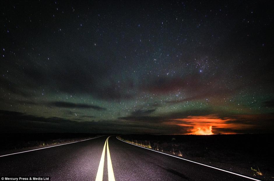 据《每日邮报》2014年10月7日报道,日前一名摄影师网晒自己驱车前往夏威夷一喷发火山拍摄的壮丽照片,引网友围观。(网页截图)