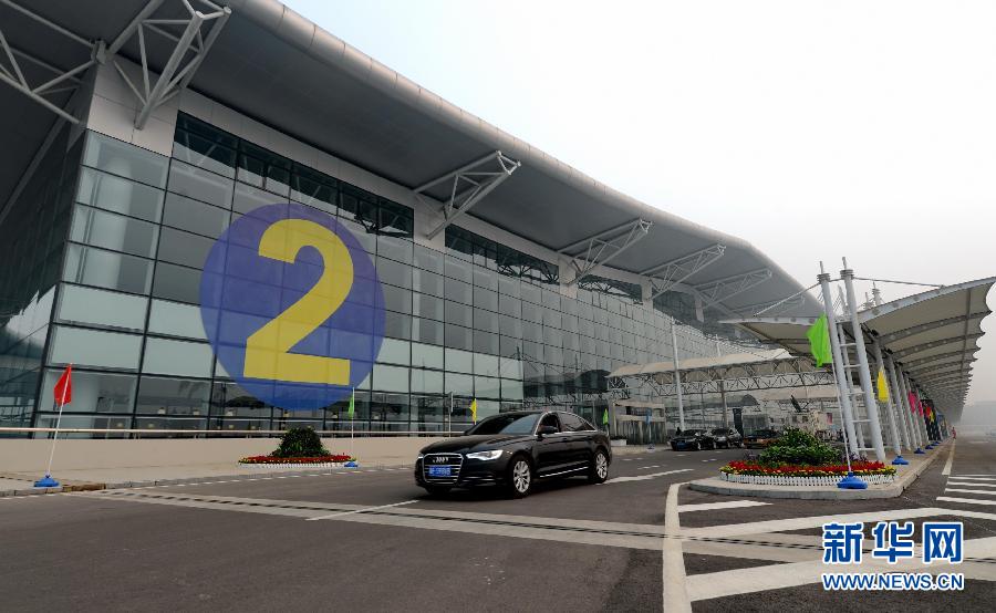石家庄国际机场2号航站楼外景(10月10日摄)。 10月10日,石家庄国际机场2号航站楼正式启用,所有国内航班将从2号航站楼进出港,国际和地区航班继续使用原来的1号航站楼。据介绍,石家庄国际机场2号航站楼建设规模15.4万平方米,飞行区新建机坪停机位32个,该航站楼启用后,石家庄机场年旅客保障能力达到2000万人次,货邮吞吐能力25万吨。新华社记者牟宇 摄