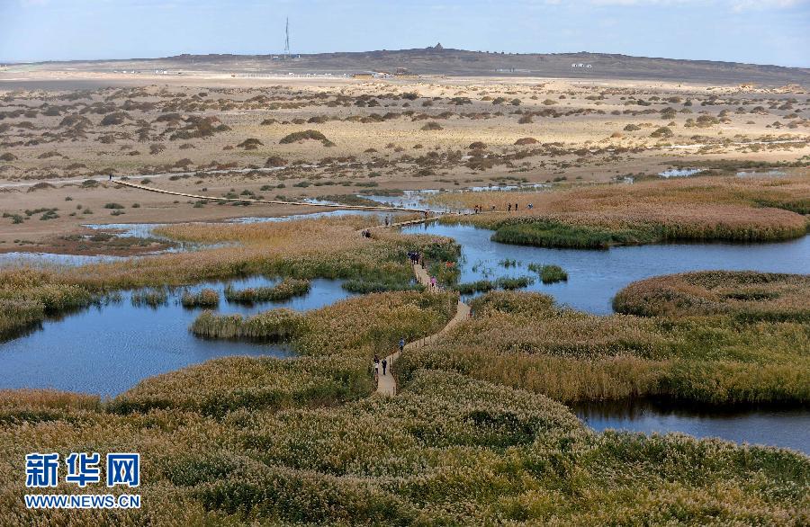 10月9日,游人在居延海边的芦苇中游览。内蒙古额济纳旗位于内蒙古最西端,在黑河水浇灌下的额济纳绿洲,历史上曾是水草丰美之地。20世纪60年代后,由于黑河中上游人口增长,灌溉用水大增,使下游水量持续减少,加上不合理的人为活动及超载放牧,致使额济纳境内河道断流加剧,居延海完全干涸,额济纳绿洲急剧萎缩,植被大面积退化,荒漠化加速蔓延,沙尘暴等自然灾害频发。 2000年,国务院决定实施黑河水量统一调度,向额济纳绿洲和居延海集中输水,使干旱多年的额济纳绿洲得到有效灌溉,地下水位明显回升,部分濒临死亡的胡杨以及消失多年的甘草和芦苇等植物又开始复苏,曾经的沙尘源额济纳重新焕发出勃勃生机。截至目前,额济纳旗林业用地面积已达2029.18万亩,全旗林地比2001年增加了495.83万亩。 新华社记者任军川摄