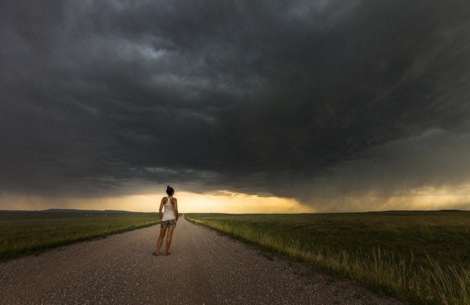 据英国《每日邮报》10月14日报道,34岁的摄影师尼古拉斯-韦格纳(Nicolaus Wegner)和32岁的Daow是一对夫妻。他们大胆地追随恶劣天气的脚步,在龙卷风,飓风,雷暴等极端天气发生的地方为妻子拍出了一张张绝美的照片。(网页截图)