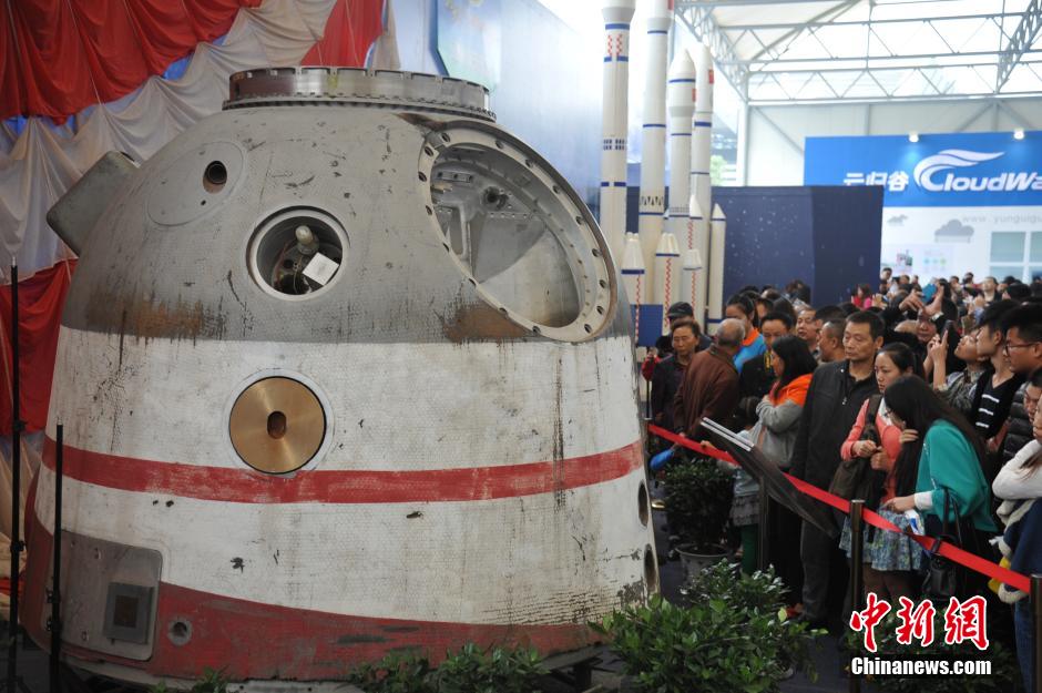 图为神舟四号返回舱实物吸引了民众参观。中新社发 杨勇 摄
