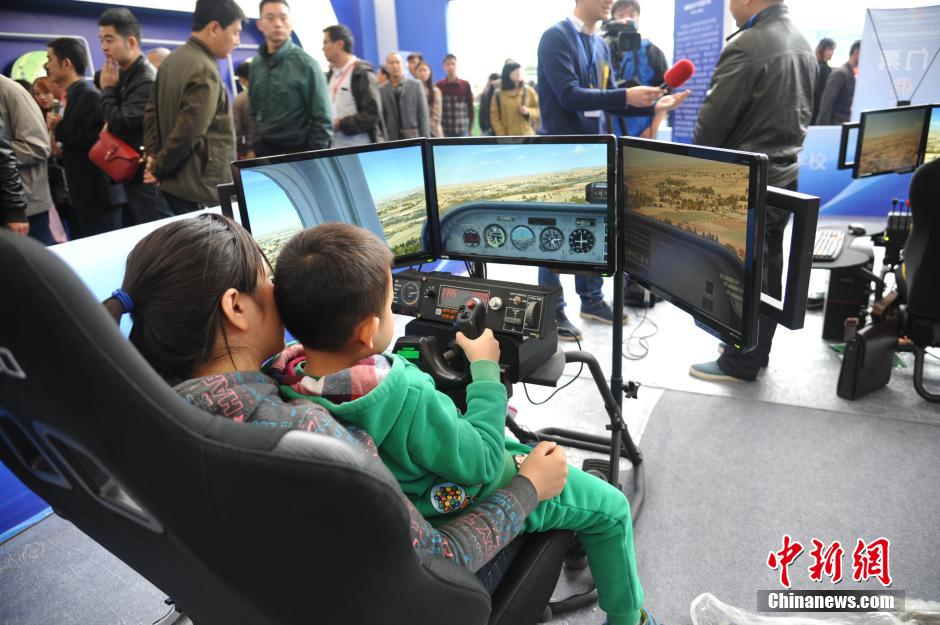 图为小朋友在操作模拟航空飞行系统。中新社发 杨勇 摄