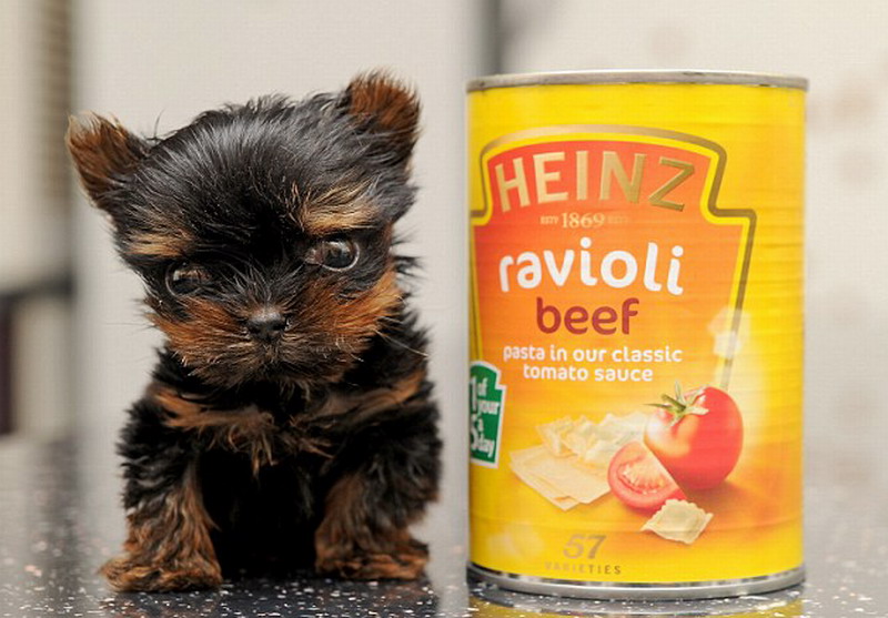 这只约克夏梗犬站起来只有5厘米高,可被放进茶杯里(网页截图)